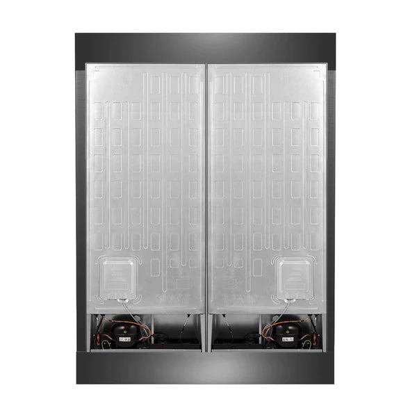 Introducing the FORNO Maderno 60" Wide 27.2 cu.ft. Refrigerator Freezer Built-in Combo with Decorative Grill Trim – a perfect fusion of style and convenience.