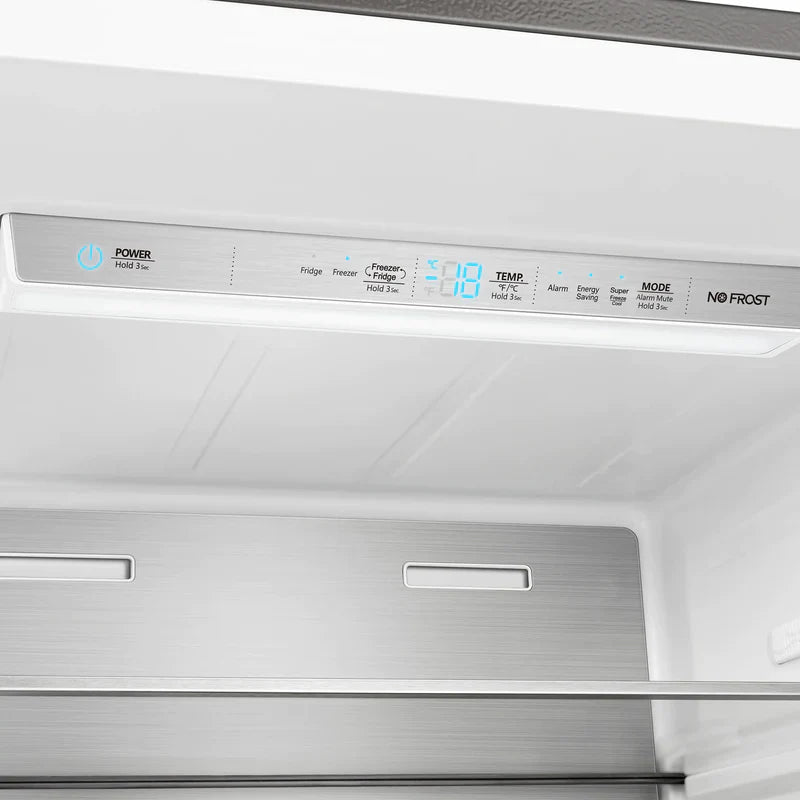 • This frost-free refrigerator/freezer combo equipped with one inverter compressor, this appliance excels at maintaining precise temperatures with exceptional efficiency. It's the ideal selection for individuals seeking safe storage for their food and beverages within limited space. With the ability to work as a refrigerator or freezer to perfection, you can confidently store fresh ingredients and frozen items at their respective optimal temperatures.