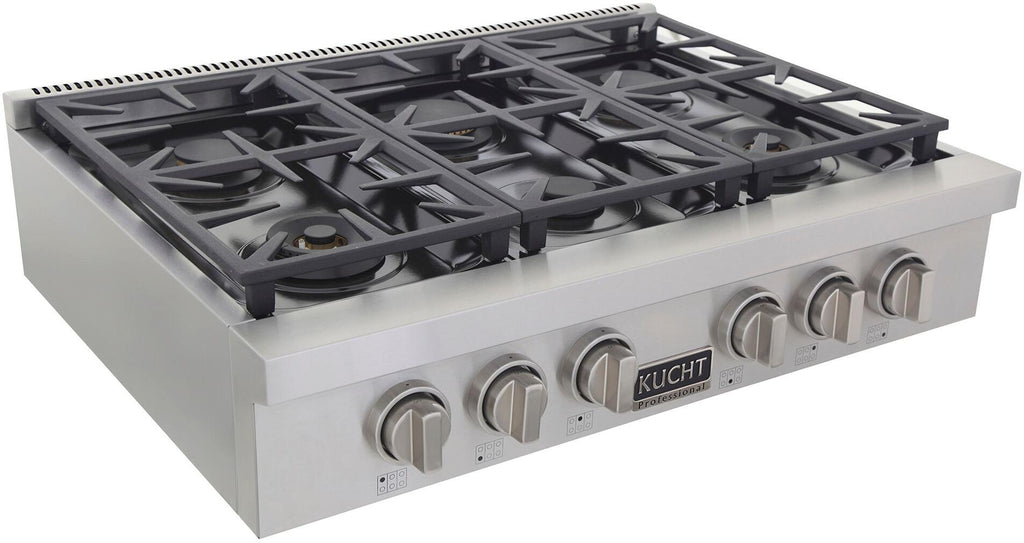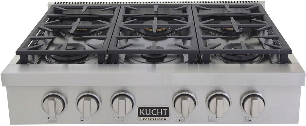 Kucht 36" 6 Burner Gas Rangetop in Stainless Steel with Silver Accents (KFX369T-S)