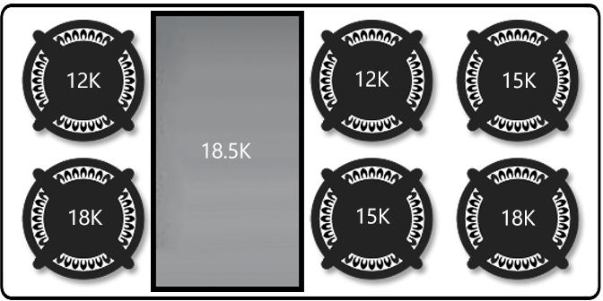 • 2 x 18,000 BTU burners / 2 x 15,000 BTU dual-flame burners with simmer / 2 x 12,000 BTU burners / 1 x 18,500 BTU Griddle