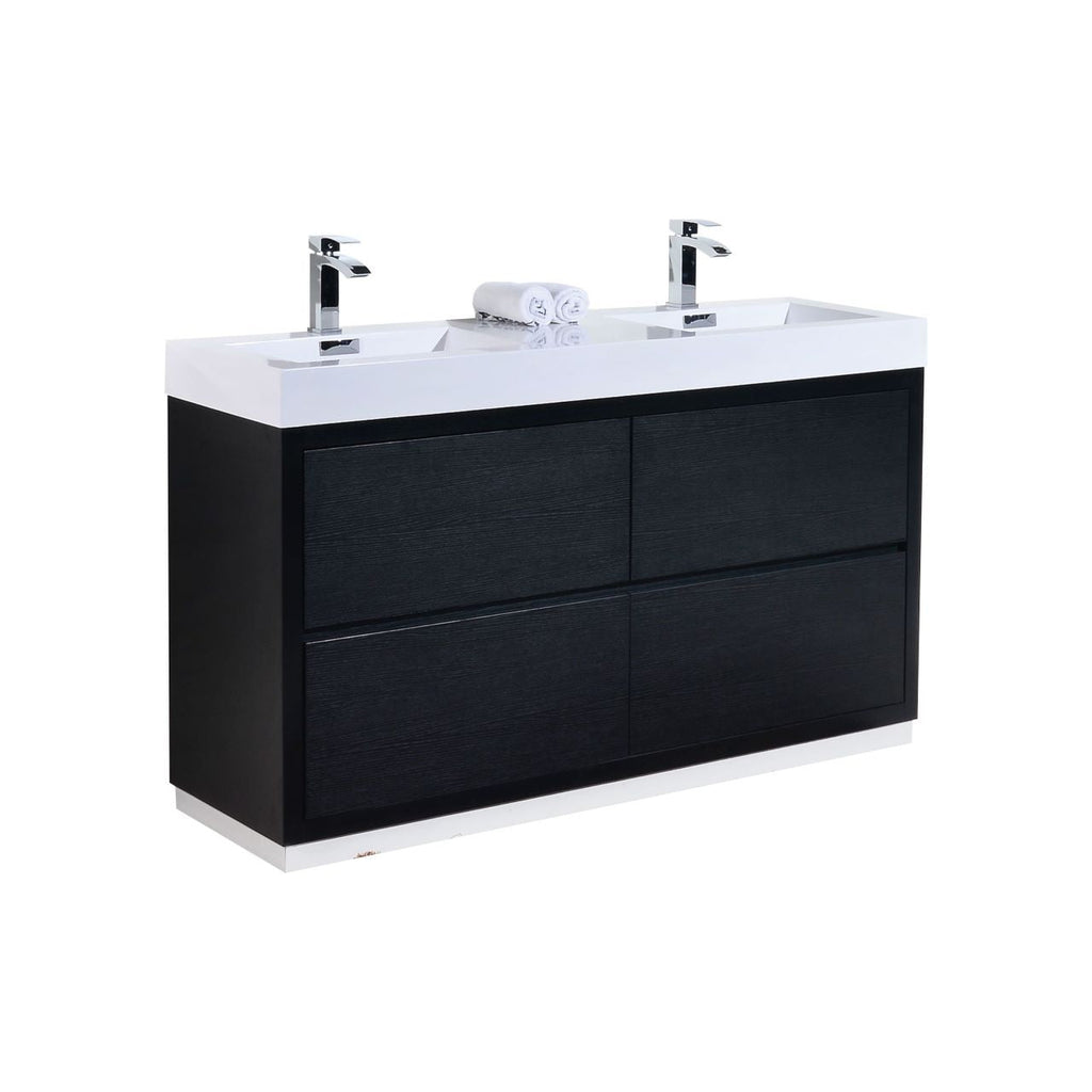 KubeBath Bliss 60" Double  Sink Black Free Standing Modern Bathroom Vanity FMB60D-BK