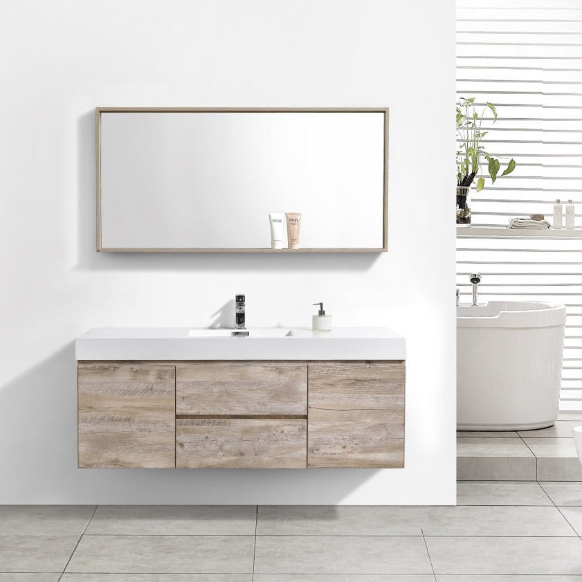 KubeBath Bliss 60" Single Sink Nature Wood Wall Mount Modern Bathroom Vanity BSL60S-NW