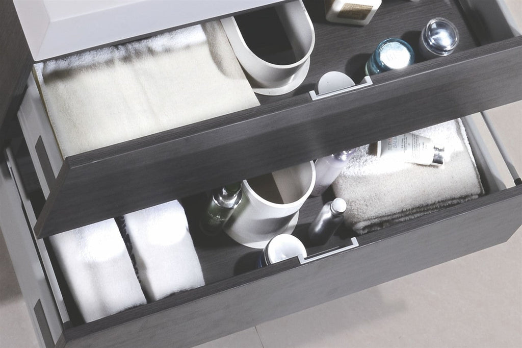 The Bliss is one of the most elegant modern Bathroom Vanities around.  This 72 Inch Single Sink model comes with a reinforced Acrylic sink, Marine Veneer Constructed Console that is fully Moisture and Waterproof, with high-quality European Hardware, that provides smooth soft-closing operation. It features four fully functional drawers.