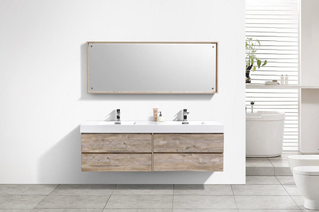 Bliss 72 in. Double Sink Wall Mount Modern Bathroom Vanity - Nature Wood