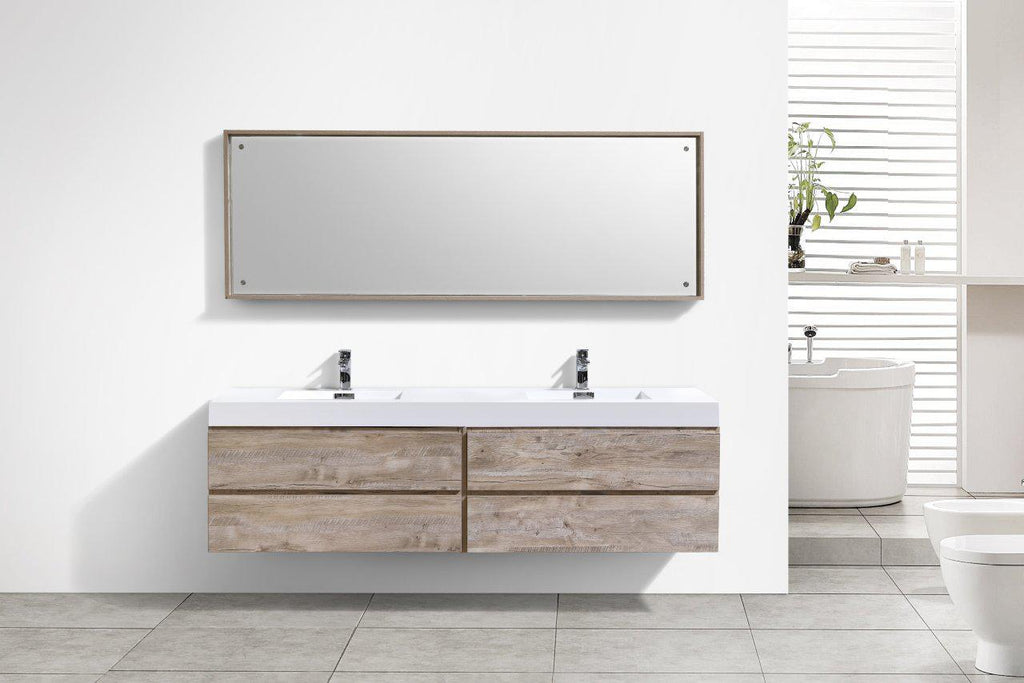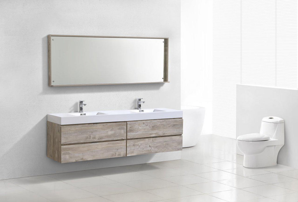 Bliss 80 in. Double Sink Wall Mount Modern Bathroom Vanity - Nature Wood