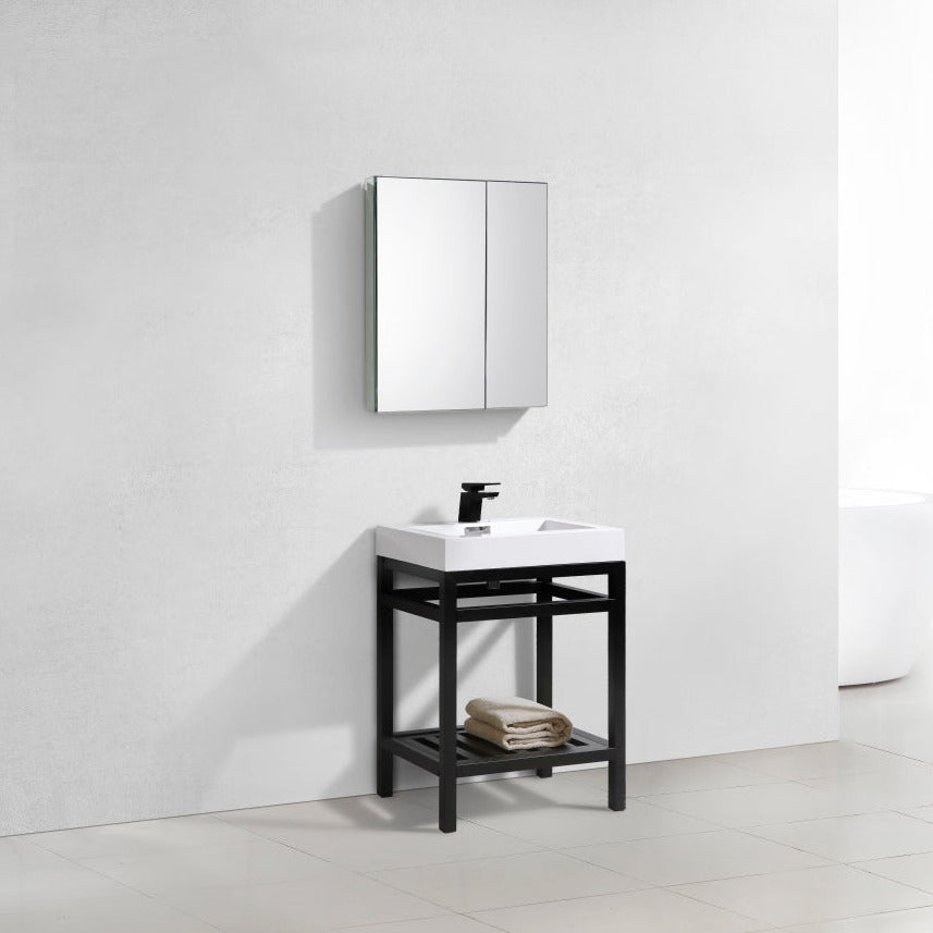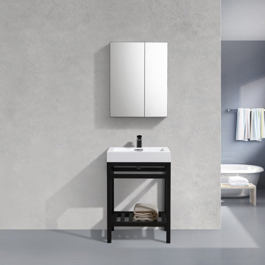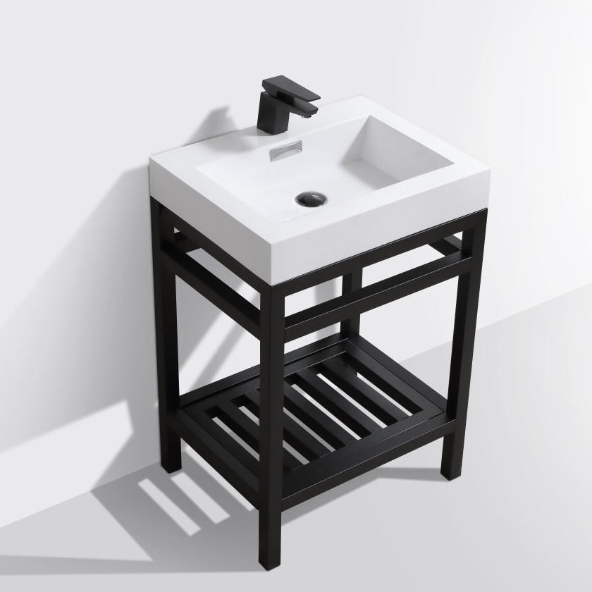 KubeBath Cisco 24" Stainless Steel Console with Acrylic Sink - Matt Black AC24-BK