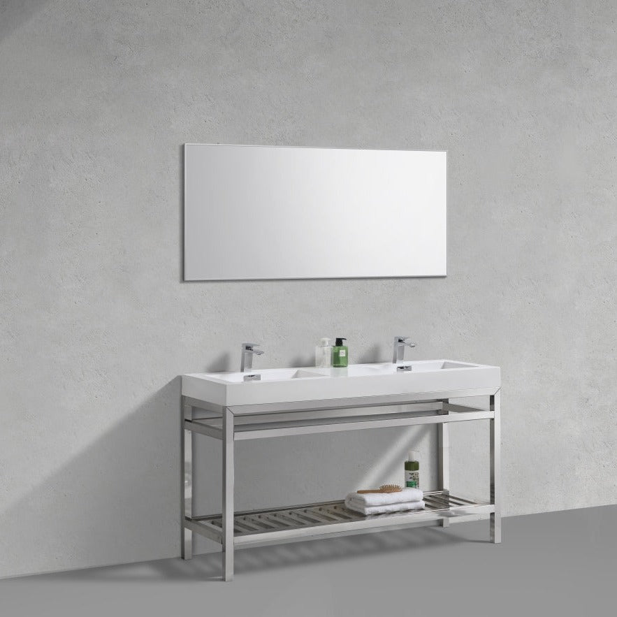 KubeBath Cisco 60" Double Sink Stainless Steel Console with Acrylic Sink - Chrome AC60D