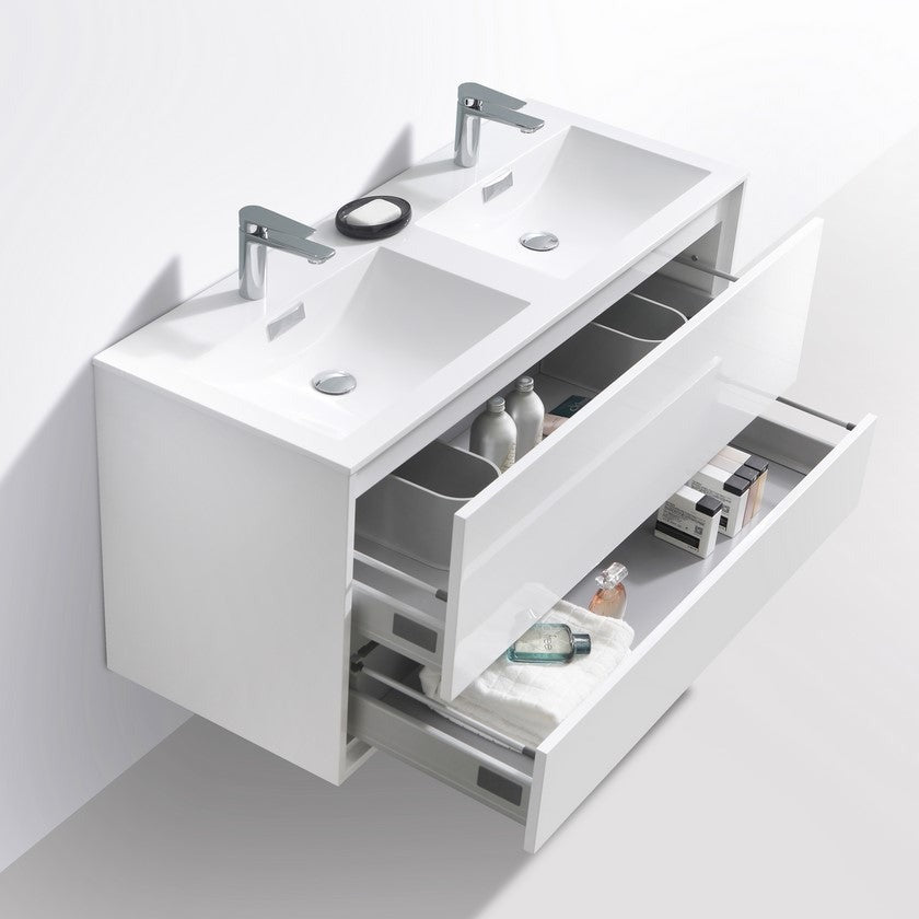 KubeBath DeLusso 48" Double Sink High Glossy White Wall Mount Modern Bathroom Vanity DL48D-GW