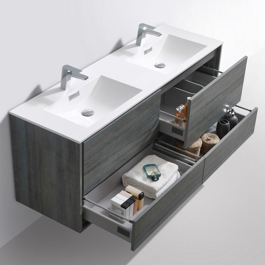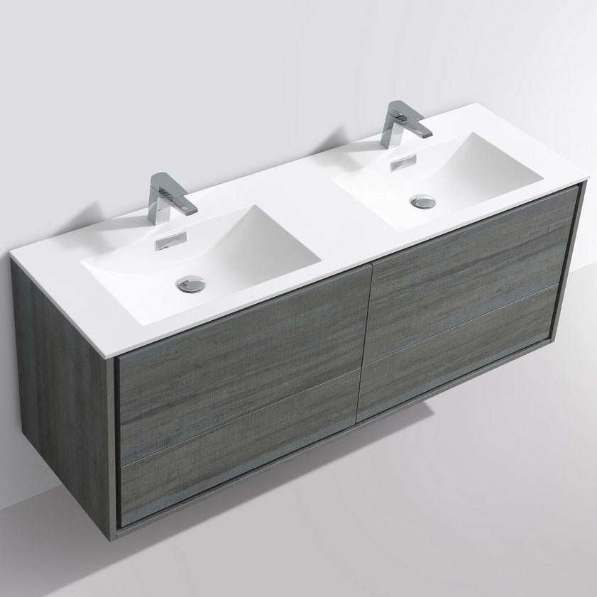 KubeBath DeLusso 60" Double Sink Ocean Grey  Wall Mount Modern Bathroom Vanity DL60D-BE