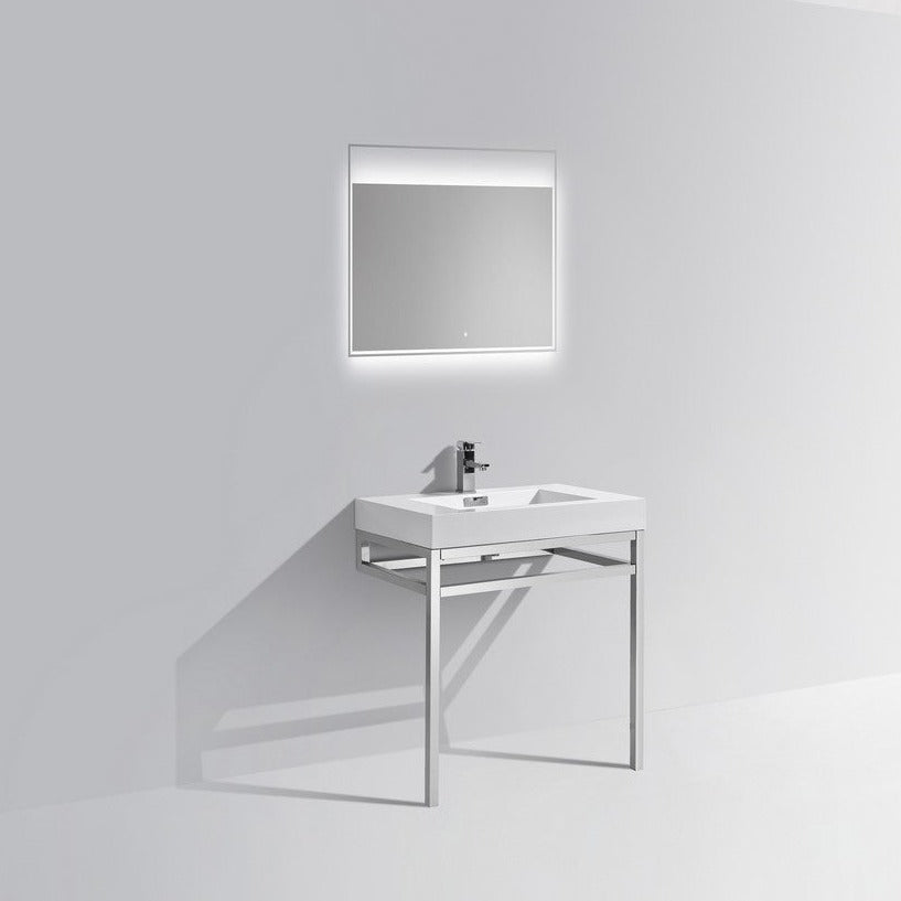 KubeBath Haus 30" Stainless Steel Console w/ White Acrylic Sink - Chrome CH30