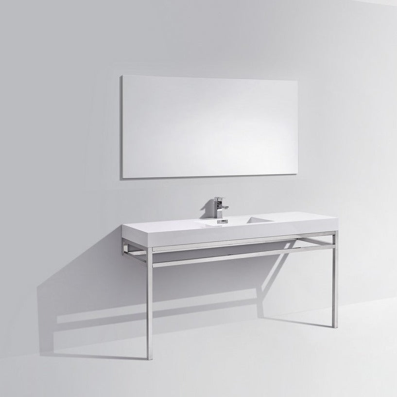 KubeBath Haus 60" Single Sink Stainless Steel Console w/ White Acrylic Sink - Chrome CH60S