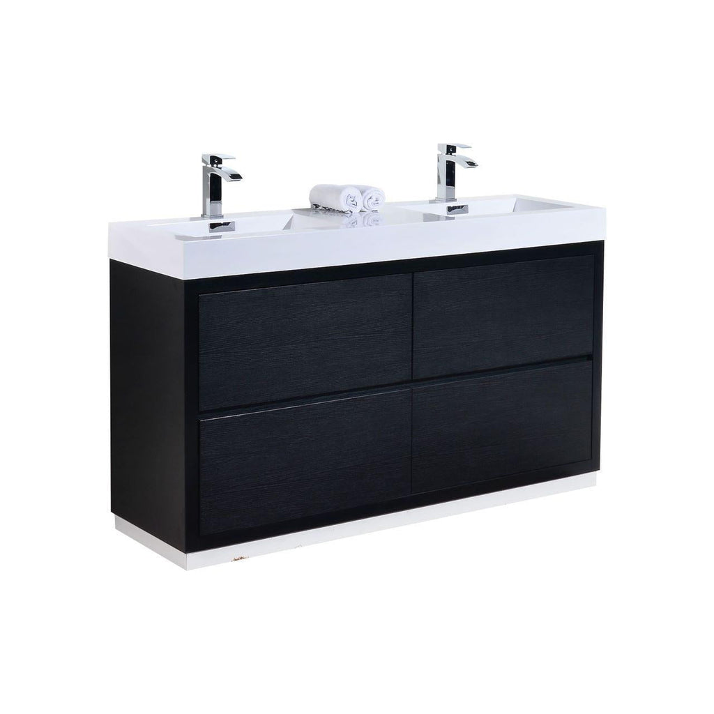 KubeBath Bliss 60 in. Double Sink Free Standing Modern Bathroom Vanity - Black, FMB60D-BK