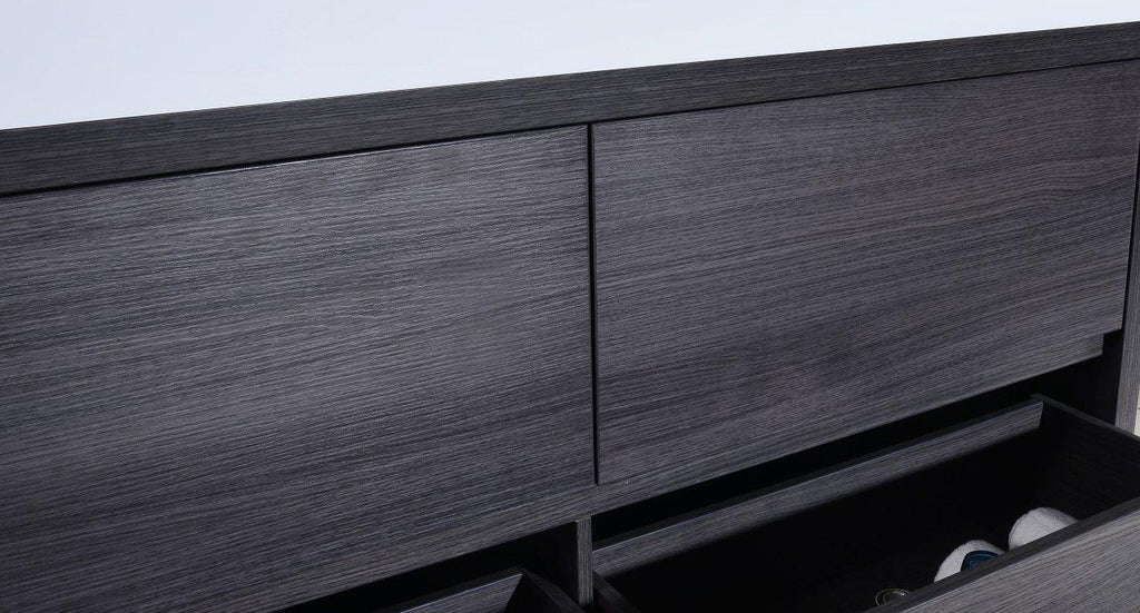 The Bliss is one of the most elegant modern Bathroom Vanities around. This 60 Inch model comes with a reinforced Acrylic sink, Marine Wood Veneer Constructed Console that is fully moister and water proof, with high quality European DTC Hardware, that provides smooth push-open operation drawers.