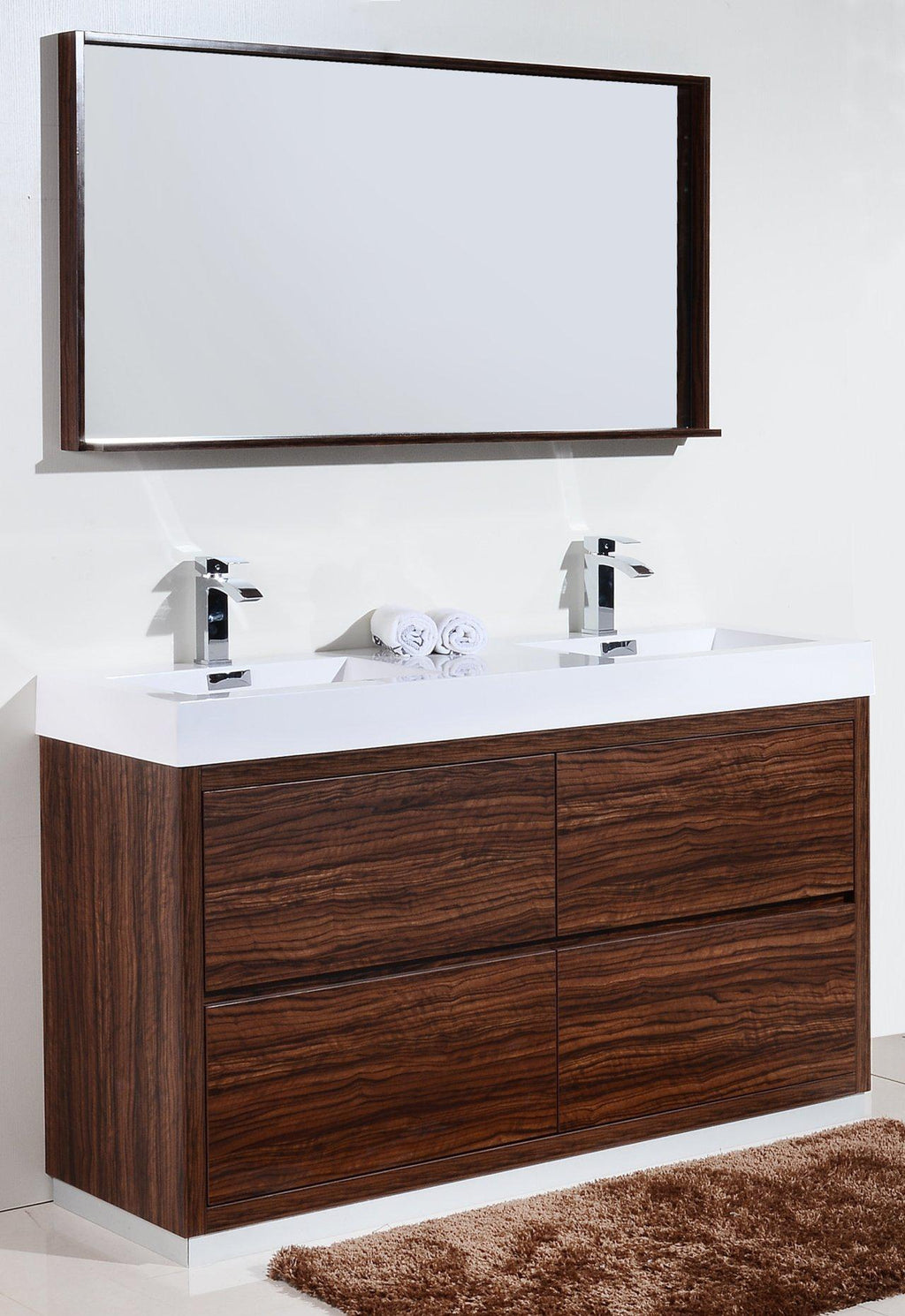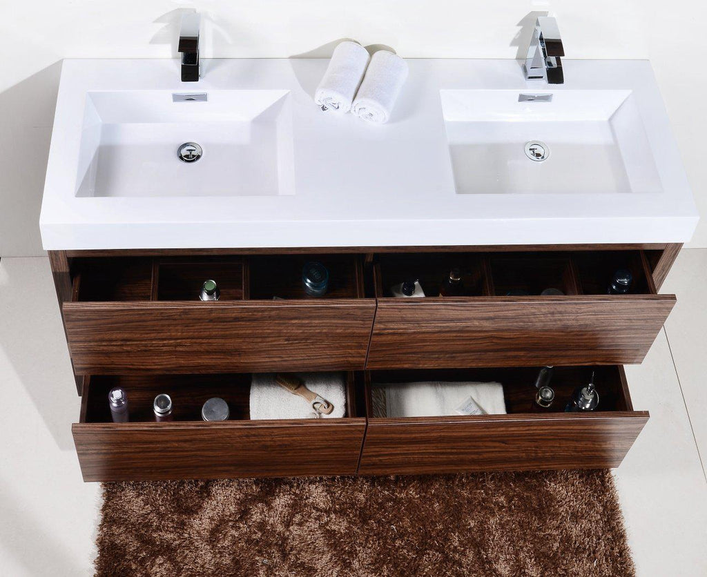 KubeBath Bliss 60 in. Double Sink Free Standing Modern Bathroom Vanity - Walnut, FMB60D-WNT