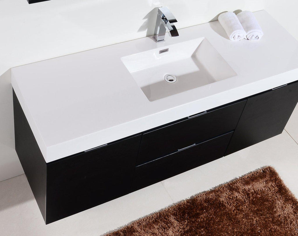 KubeBath Bliss 60 in. Single Sink Wall Mount Modern Bathroom Vanity - Black, BSL60S-BK