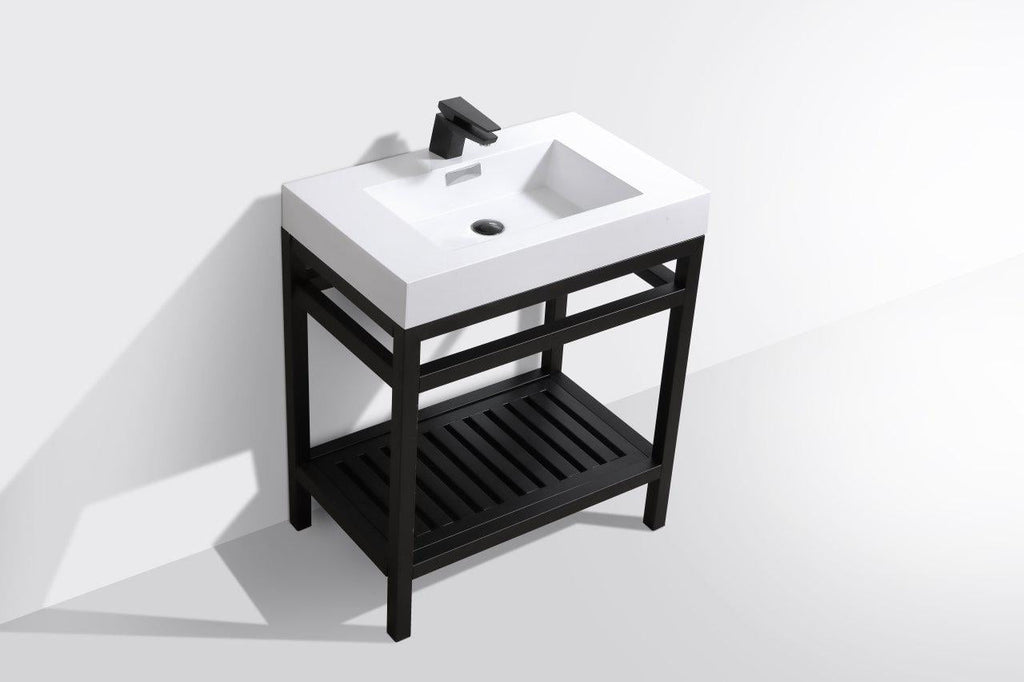 KubeBath Cisco 30 in. Stainless Steel Console with Acrylic Sink - Matte Black, AC30-BK