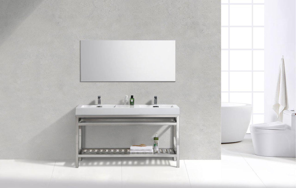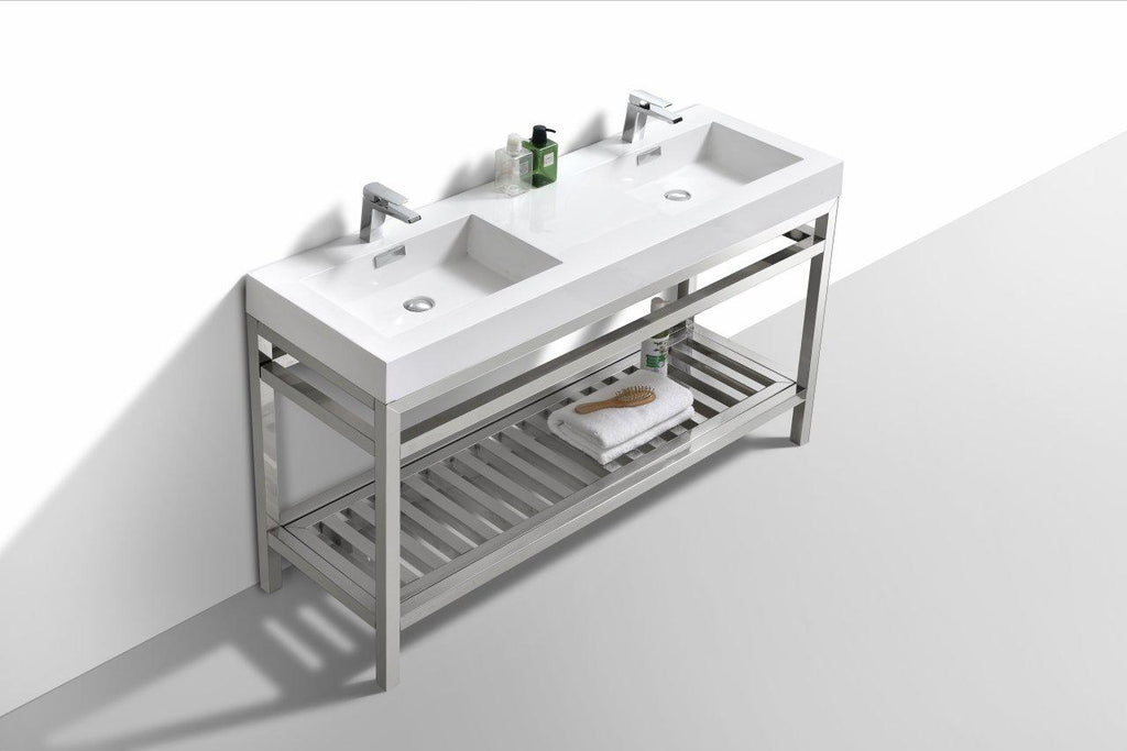 KubeBath Cisco 60 in. Double Sink Stainless Steel Console with Acrylic Sink - Chrome, AC60D
