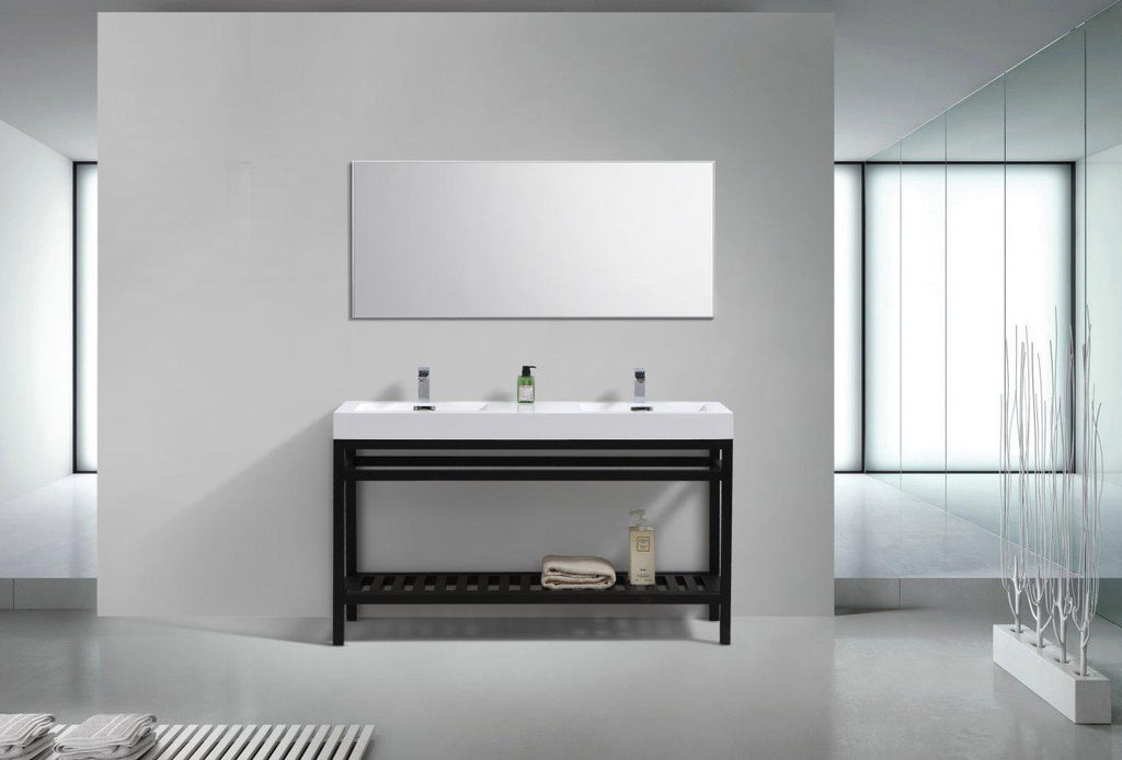 KubeBath Cisco 60 in. Double Sink Stainless Steel Console with Acrylic Sink - Matte Black, AC60D-BK