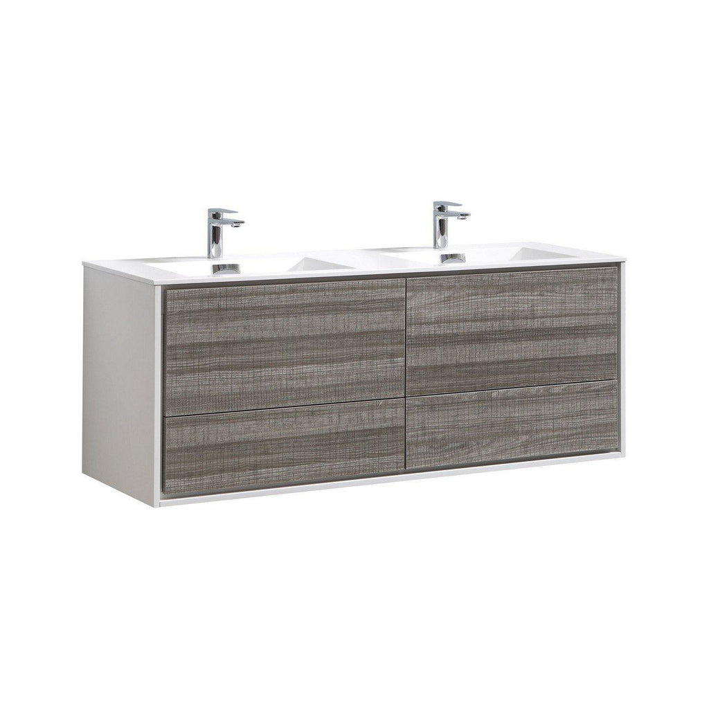 KubeBath De Lusso 60 in. Double Sink Wall Mount Modern Bathroom Vanity - Ash Gray, DL60D-HGASH
