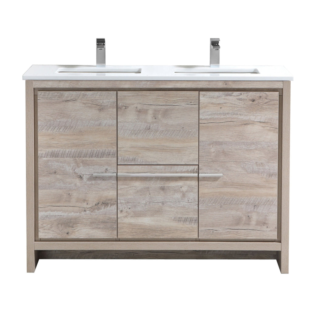 KubeBath Dolce 48″ Double Sink Nature Wood  Modern Bathroom Vanity with White Quartz Counter-Top AD648DNW