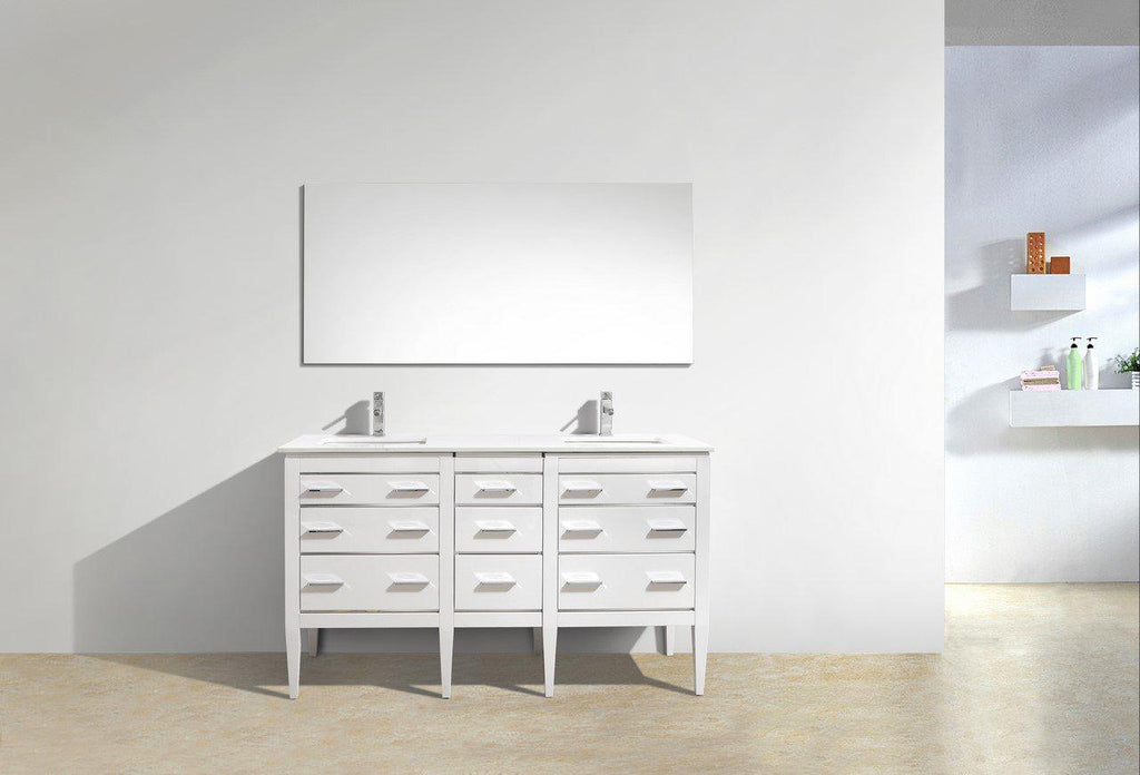 KubeBath Eiffel 60'' Double Sink High Gloss White Vanity with White Counter Top, E60-GW