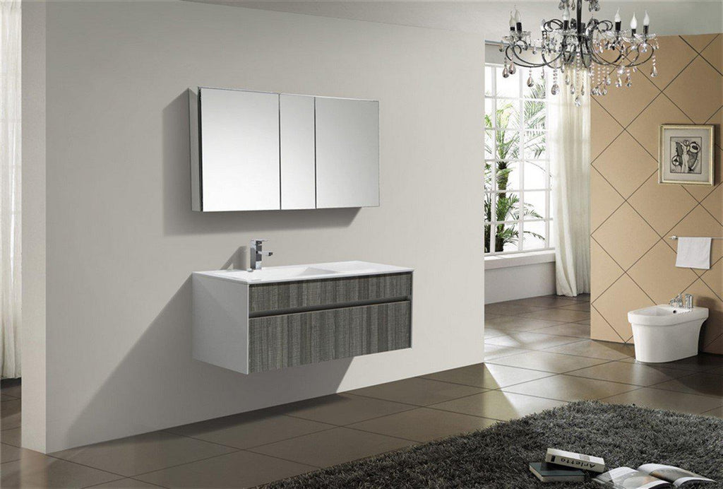 KubeBath Fitto 48 in. Ash Gray Wall Mount Modern Bathroom Vanity - Single Sink, S1200SHGASH