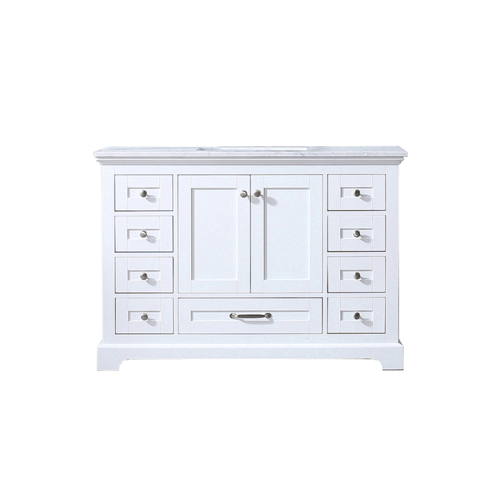 Lexora Dukes 48" White Single Vanity, White Carrara Marble Top, White Square Sink and no Mirror - LD342248SADS000