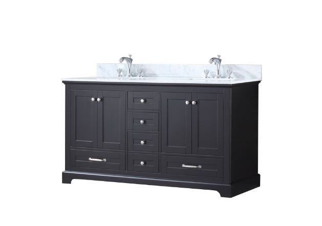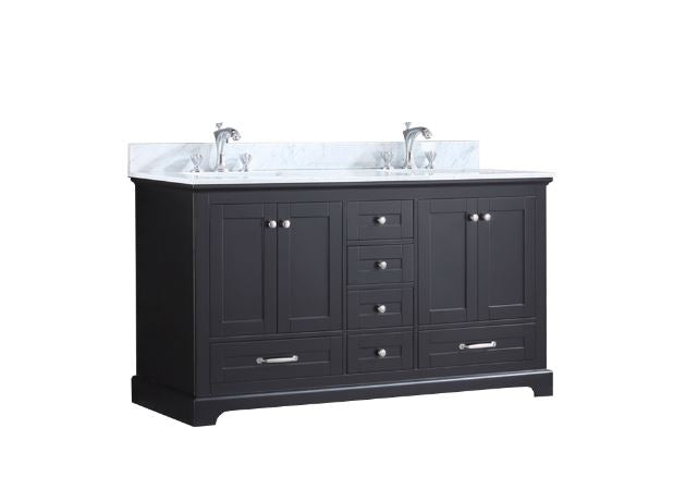 Lexora Dukes 60" Espresso Double Vanity, White Carrara Marble Top, White Square Sinks and no Mirror LD342260DGDS000