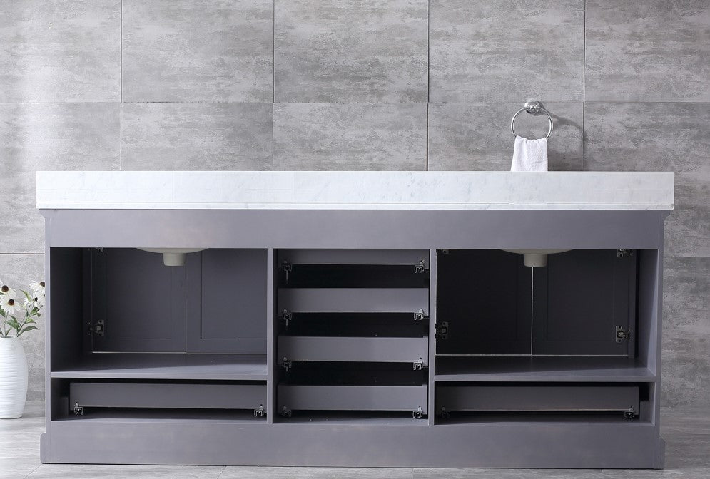 But with ample cabinet and drawer space, soft-close hinges and drawer slides, and superior water resistance, this vanity’s incredible functionality is purely modern. The vanity also comes complete with undermount sinks and matching framed mirrors, making it easy to give your bathroom that elegant finishing touch you’ve been searching for.