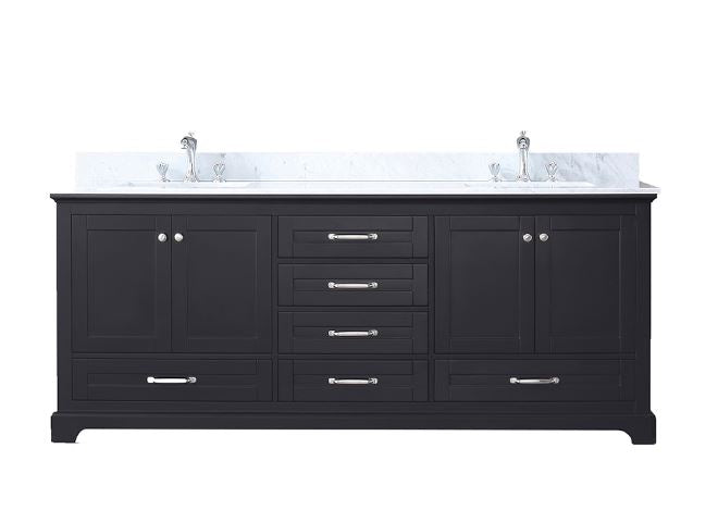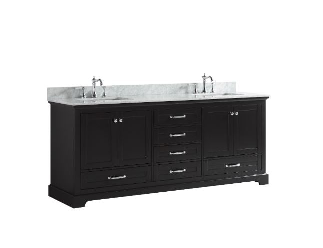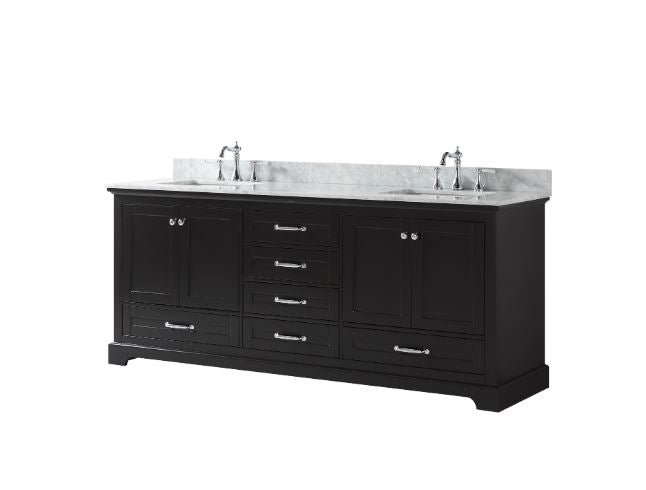 Lexora Dukes 80" Espresso Double Vanity, White Carrara Marble Top, White Square Sinks and no Mirror LD342280DGDS000
