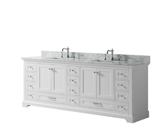 Lexora Dukes 84" White Double Vanity, White Carrara Marble Top, White Square Sinks and no Mirror LD342284DADS000