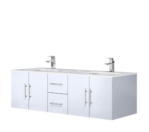 Lexora Geneva 60" Glossy White Double Vanity, White Carrara Marble Top, White Square Sinks and no Mirror LG192260DMDS000