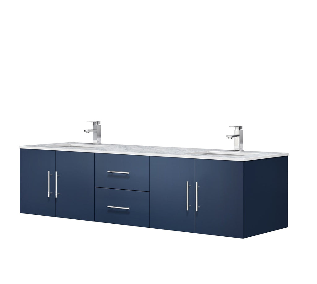 Lexora Geneva 72" Navy Blue Double Vanity, White Carrara Marble Top, White Square Sinks and no Mirror LG192272DEDS000