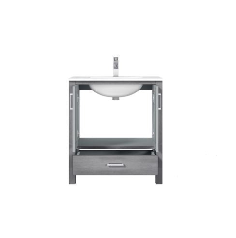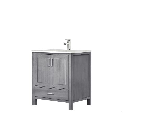 Lexora Jacques 30" Distressed Grey Single Vanity, White Carrara Marble Top, White Square Sink and no Mirror LJ342230SDDS000