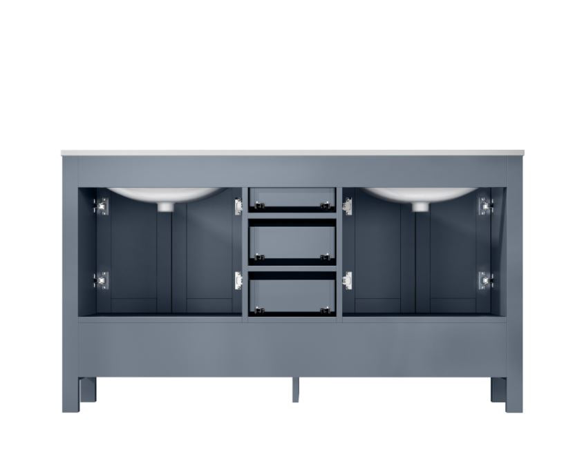 Lexora Jacques 60" Dark Grey Double Vanity, White Carrara Marble Top, White Square Sinks and no Mirror LJ342260DBDS000