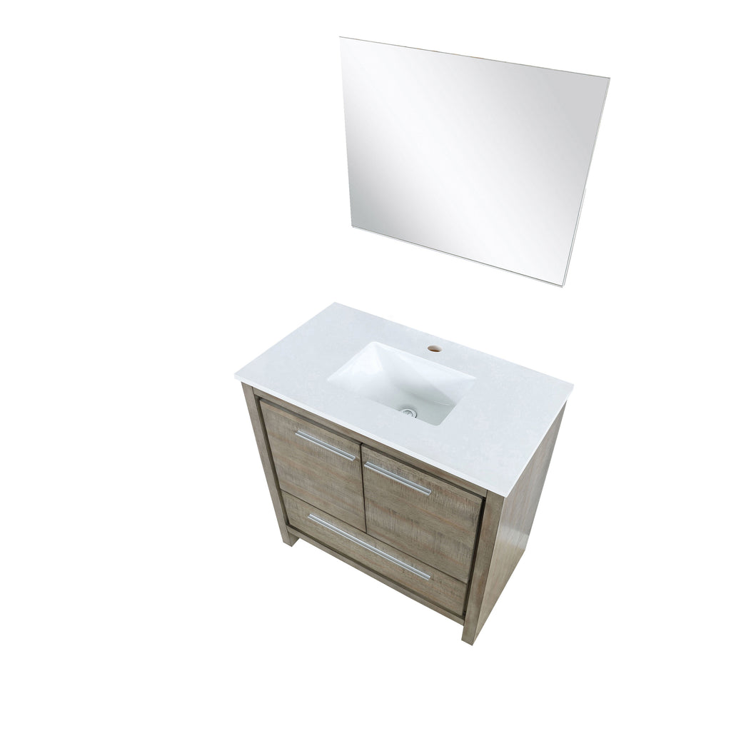 Lexora Lafarre 36" Rustic Acacia Bathroom Vanity, White Quartz Top, White Square Sink, and 28" Frameless Mirror LLF36SKSOSM28