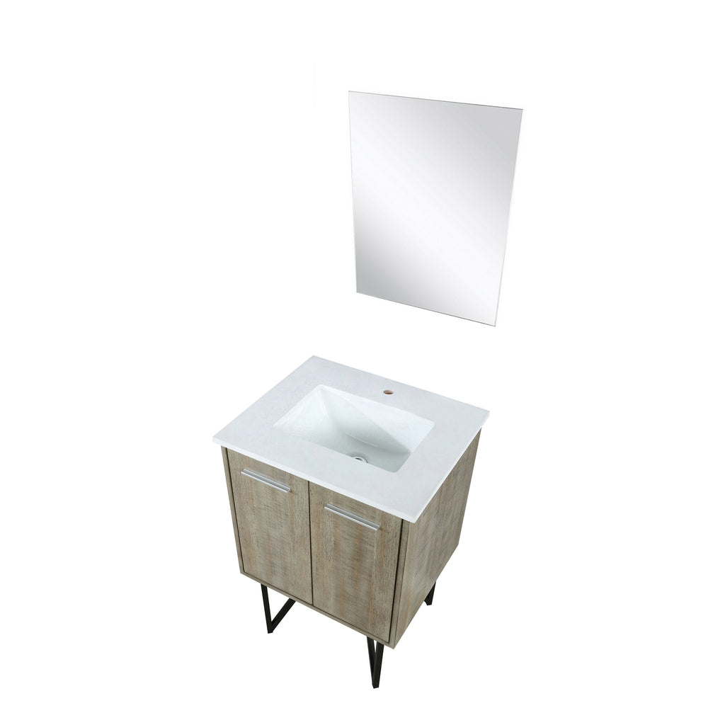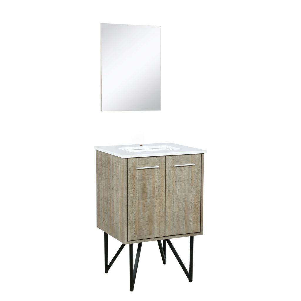 Lexora Lancy 24" Rustic Acacia Bathroom Vanity, White Quartz Top, White Square Sink, and 18" Frameless Mirror - LLC24SKSOSM18