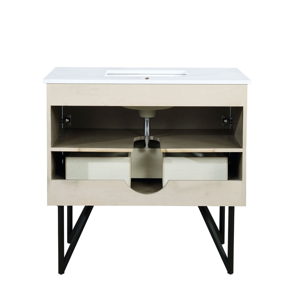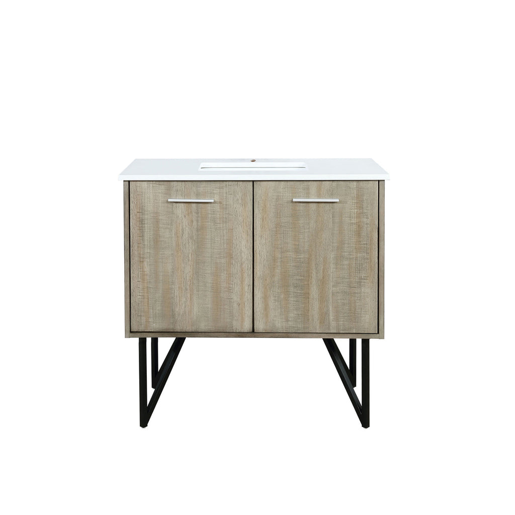 Lexora Lancy 36" Rustic Acacia Bathroom Vanity, White Quartz Top, and White Square Sink LLC36SKSOS000