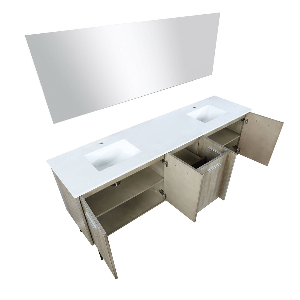 Lexora Lancy 80" Rustic Acacia Double Bathroom Vanity, White Quartz Top, White Square Sinks, and 70" Frameless Mirror  LLC80DKSOSM70