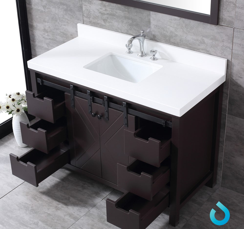 Lexora Marsyas 48" Brown Single Vanity, White Quartz Top, White Square Sink and no Mirror LM342248SCCS000