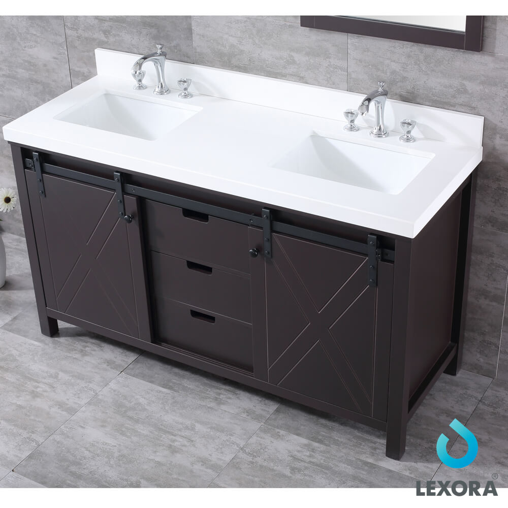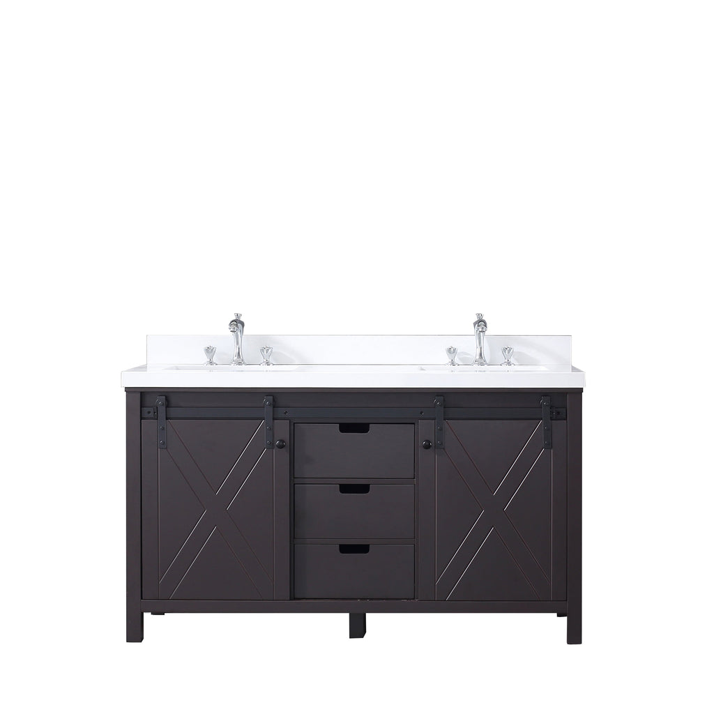 Lexora Marsyas 60" Brown Double Vanity, White Quartz Top, White Square Sinks and no Mirror LM342260DCCS000