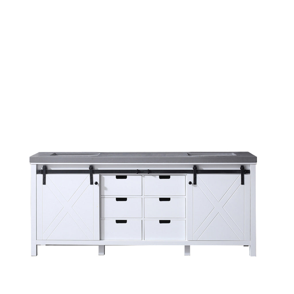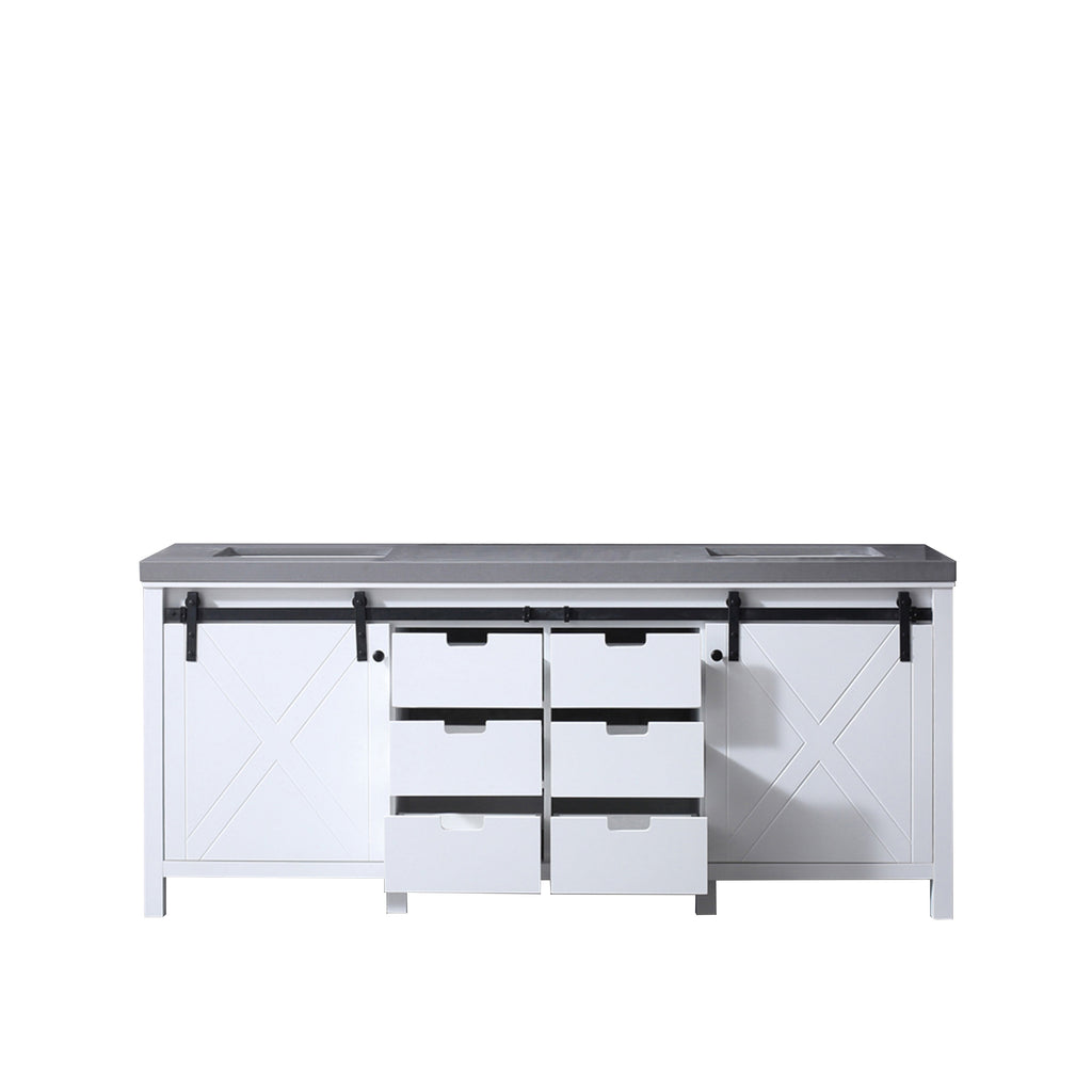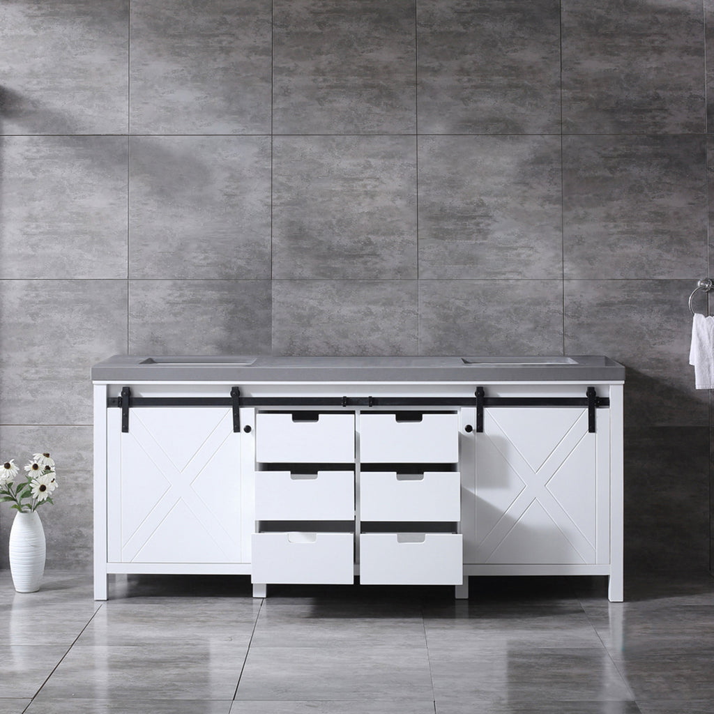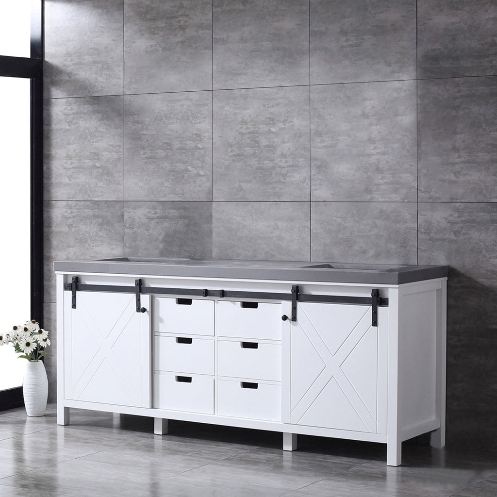 Lexora  Marsyas 80" White Double Vanity, Grey Quartz Top, White Square Sinks and no Mirror LM342280DAAS000