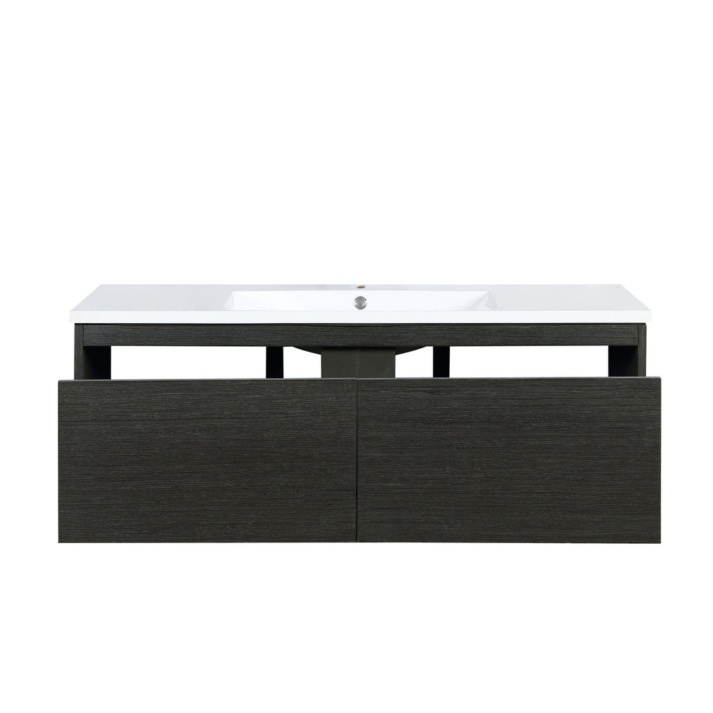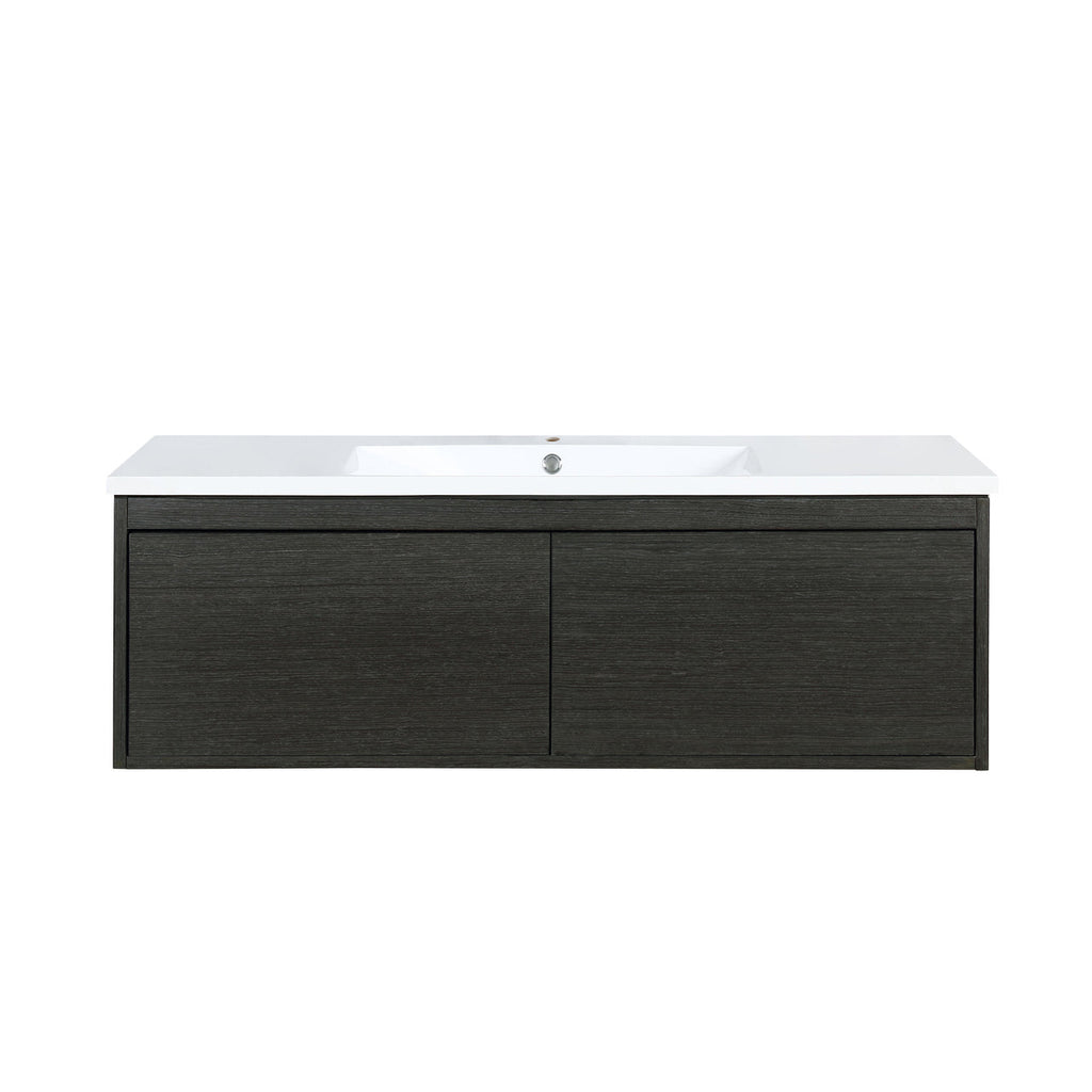 Infuse your bathroom with a calming sense of harmony. The Sant collection blends bold, natural iron charcoal wood grain with stylish vibrant white accents. Simplicity lines each element through form and functionality. Despite its minimalist contours, each panel is polished to perfection through our extensive detailing process. Easily accessible and beautifully crafted, ample storage space remains tucked underneath, ensuring all your necessities are with arm's reach. Brilliant design and a streamlined profile lend a balanced ambience to your bathroom.