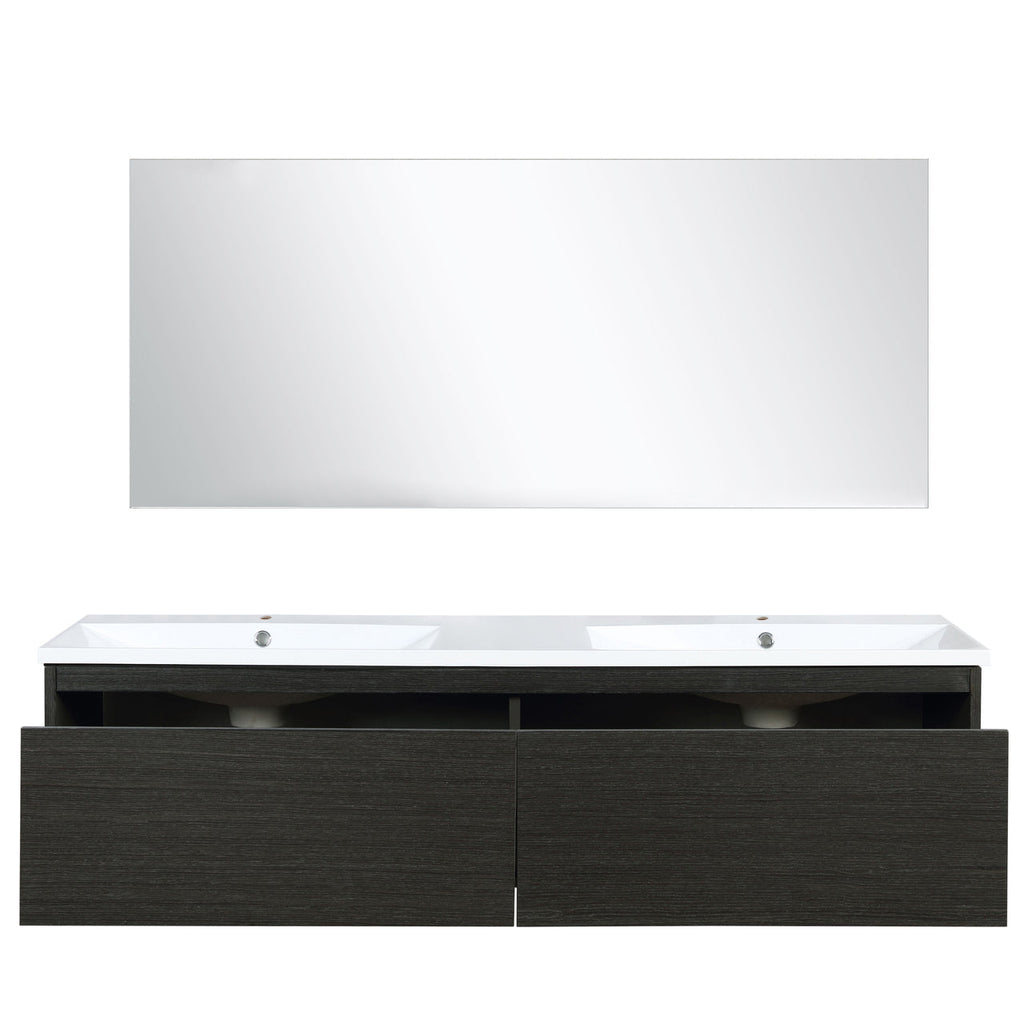 Lexora Sant 60" Iron Charcoal Double Bathroom Vanity, Acrylic Composite Top with Integrated Sinks, and 55" Frameless Mirror LS60DRAISM55