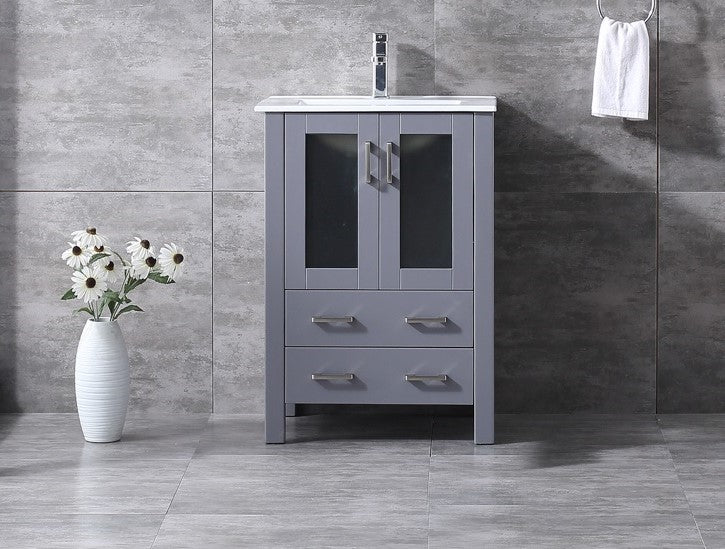 Lexora Volez 24" Dark Grey Single Vanity, Integrated Top, White Integrated Square Sink and no Mirror LV341824SBES000