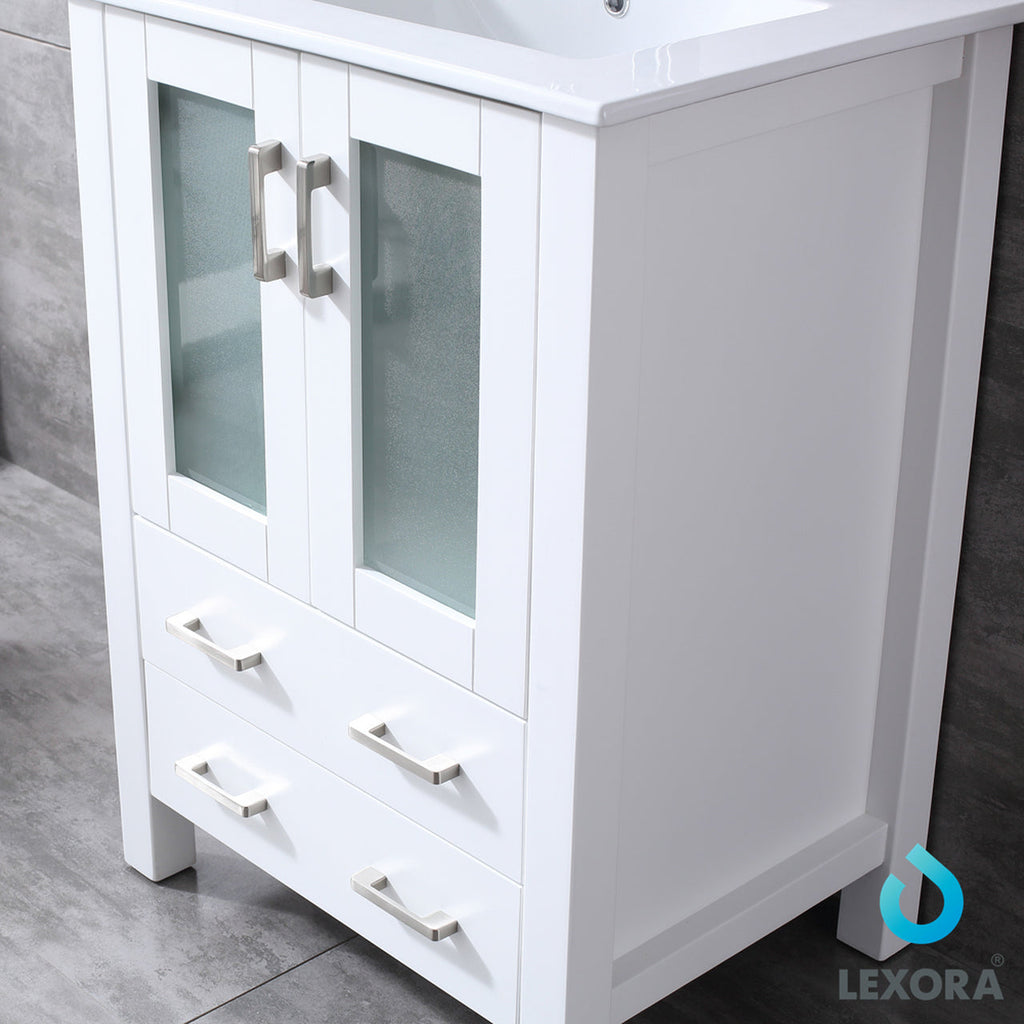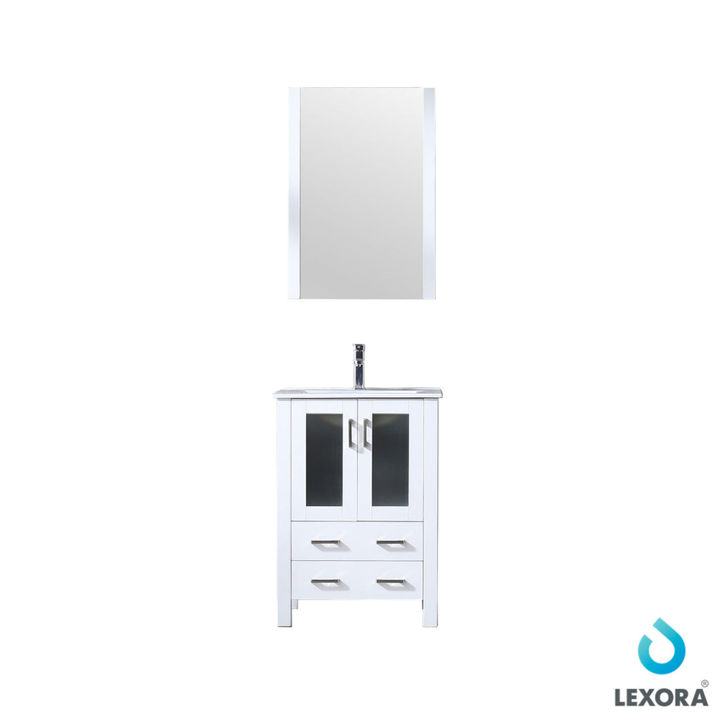 Lexora  Volez 24" White Single Vanity, Integrated Top, White Integrated Square Sink and 22" Mirror LV341824SAESM22