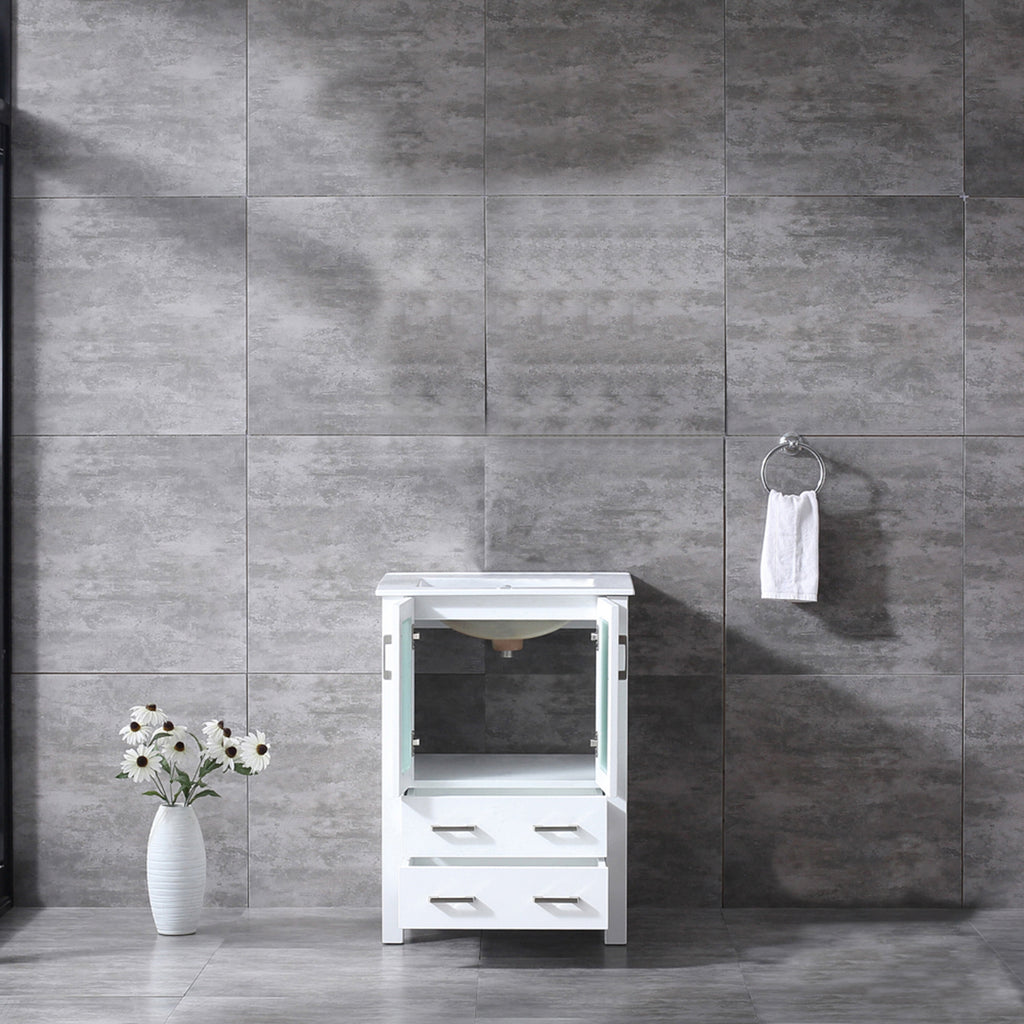 Lexora  Volez 24" White Single Vanity, Integrated Top, White Integrated Square Sink and no Mirror LV341824SAES000