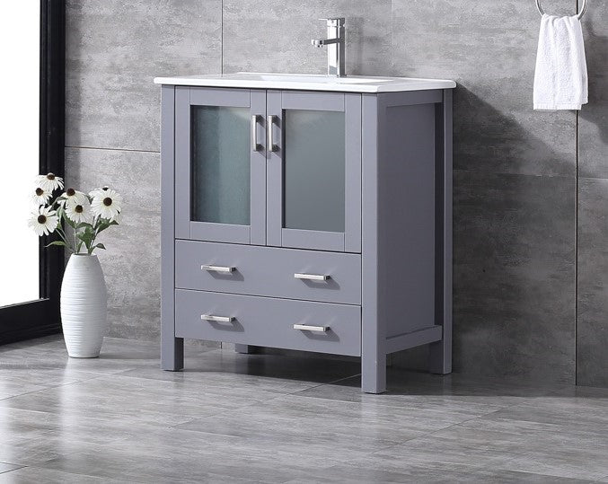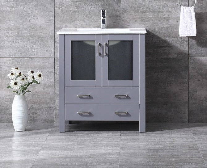 Lexora Volez 30" Dark Grey Single Vanity, Integrated Top, White Integrated Square Sink and no Mirror LV341830SBES000