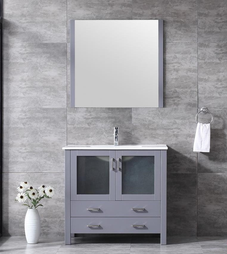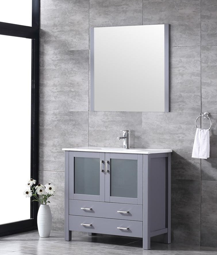 Lexora Volez 36" Dark Grey Single Vanity, Integrated Top, White Integrated Square Sink and 34" Mirror LV341836SBESM34