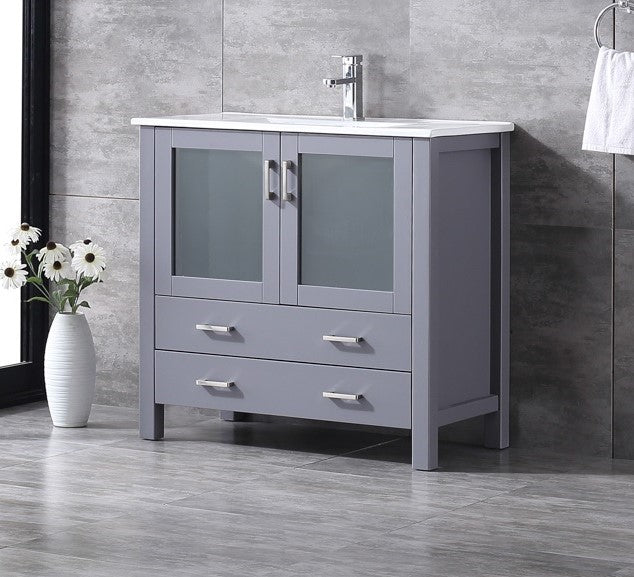 Lexora Volez 36" Dark Grey Single Vanity, Integrated Top, White Integrated Square Sink and no Mirror LV341836SBES000